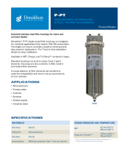 唐纳森 P-PT 单芯滤壳适用于要求 316 不锈钢材质的工业应用。