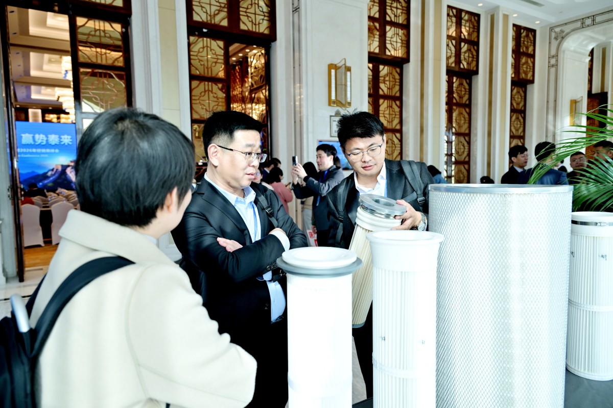 茶歇间的滤筒滤袋展区,不仅是产品展示,更是思维碰撞的“前沿哨所”。伙伴们驻足探讨,交流热烈,无数合作火花在此迸发。