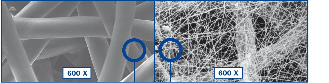 Ultra-Web® 过滤技术的特点是在滤料表面有一层细纤维(直径 0.2 - 0.3 微米),用于捕获亚微米的污染物。这使得粉尘饼在自动清洁周期中很容易脱落,从而确保更清洁的空气保持更长时间。