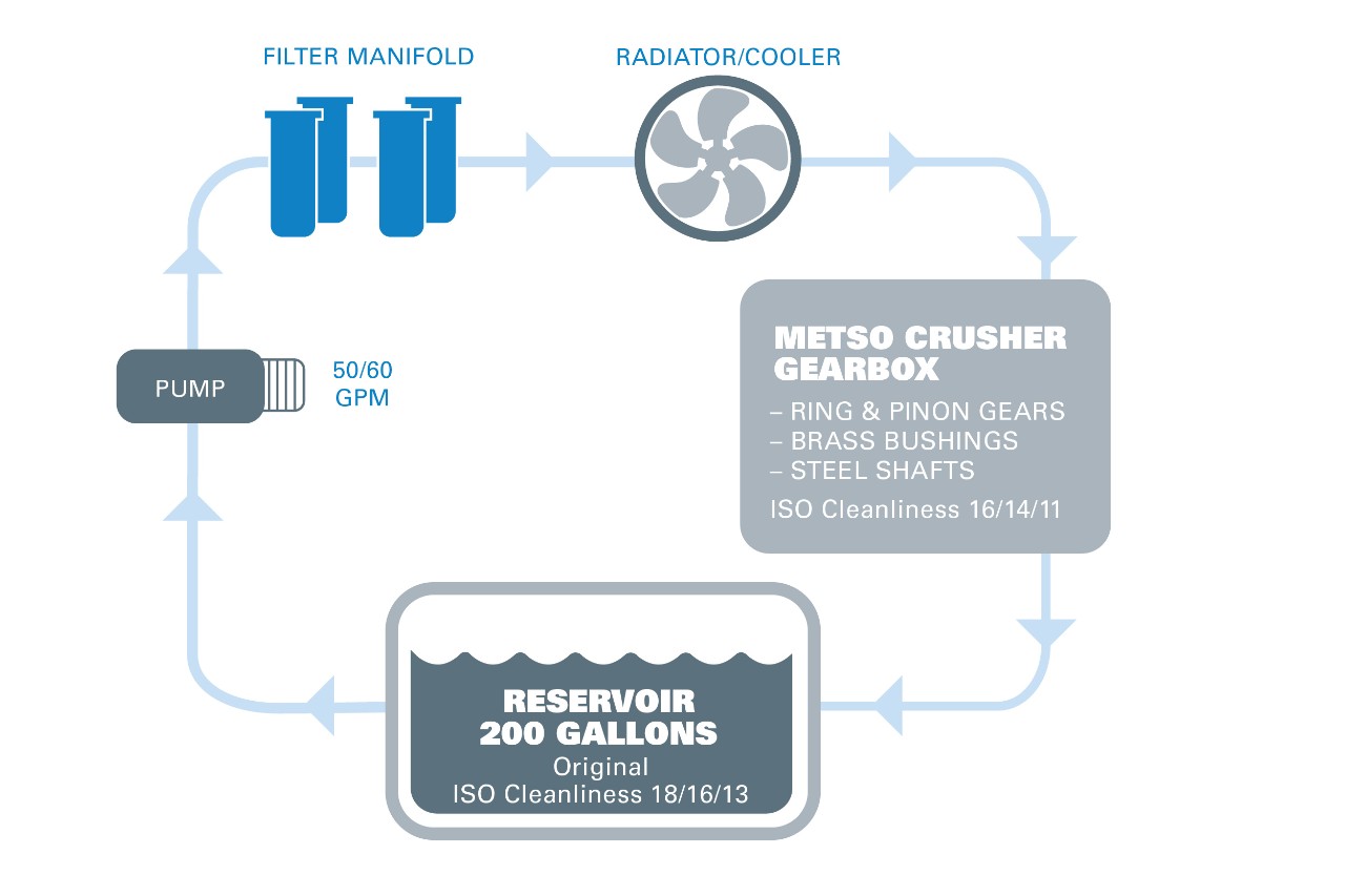 *通过将碎石机油的 ISO 清洁度标准降低 8 级 ISO 代码标准,根据 Noria Corporation 的使用寿命延长表,变速箱和部件的平均预期使用寿命将延长 3.5 倍