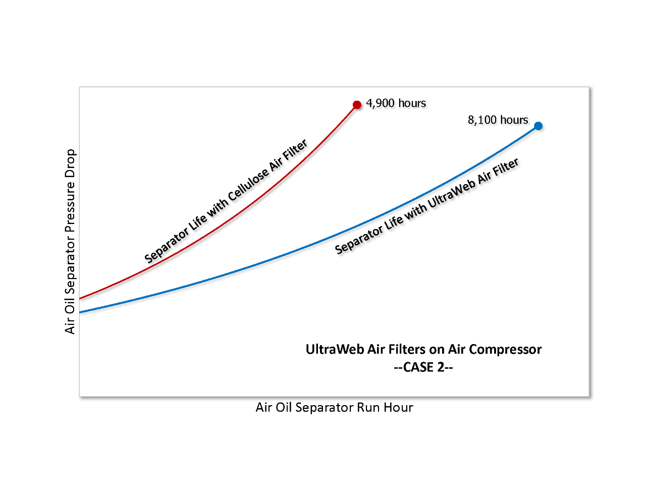 图 13:在两种案例研究中,Ultra-Web 空气滤芯可增加油气分离器的使用寿命。