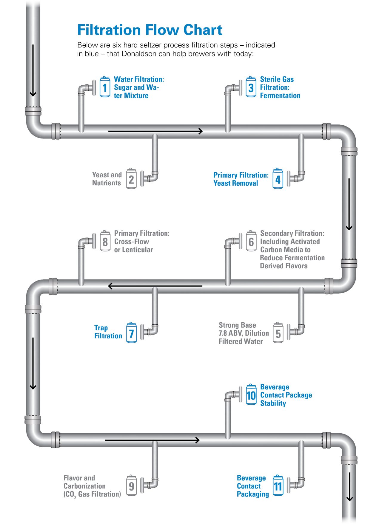 通过产品开发和客户试用计划,唐纳森为不断增长的精酿啤酒和硬苏打水行业提供服务。唐纳森久经考验的工艺过滤产品为精酿啤酒酿造商提供了经济高效的途径,使他们能够扩展其产品组合,并在一个令人耳目一新的新兴类别中发现新的收入来源。