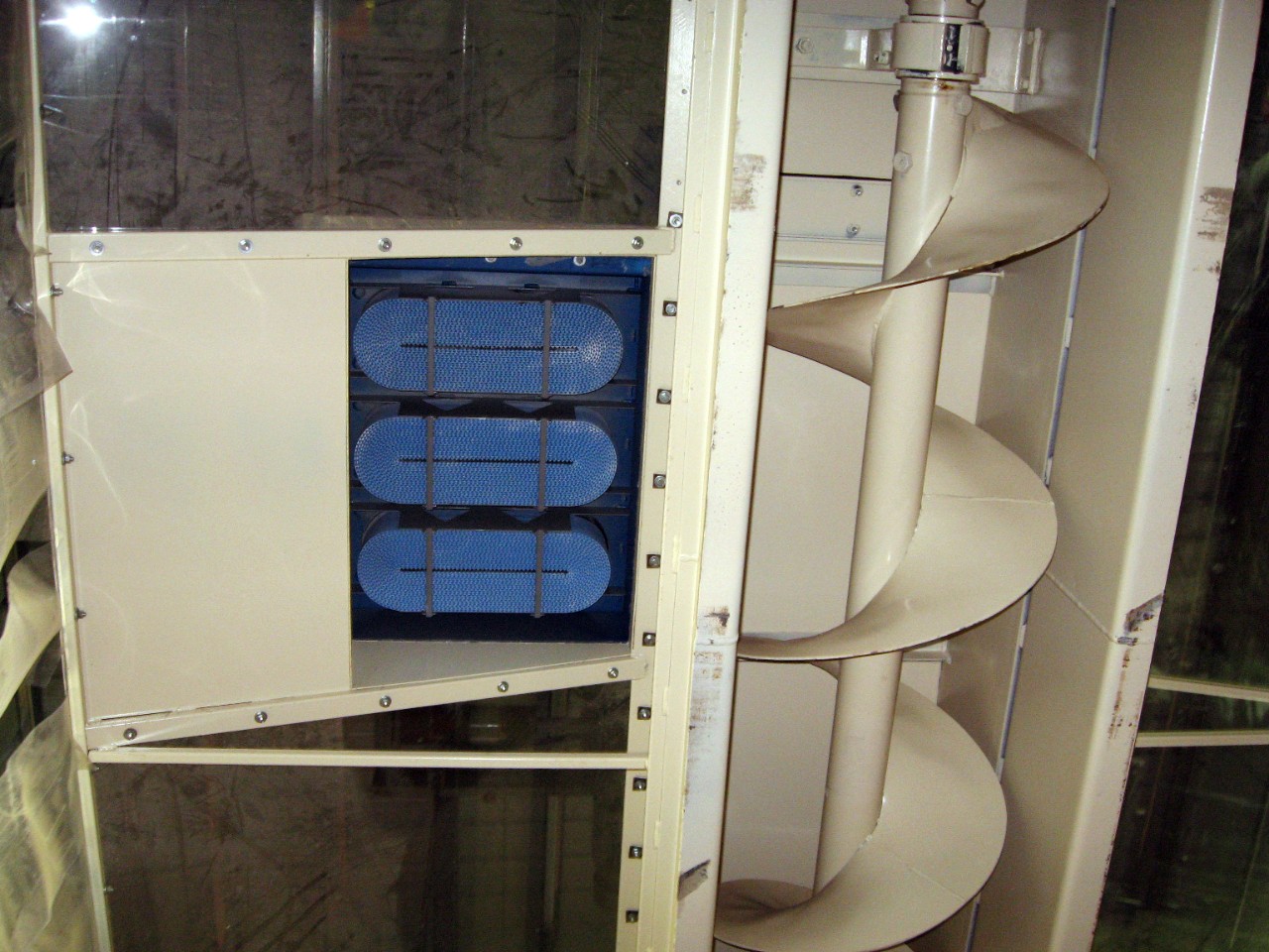 位于美国中部的粮食卡车卸载站,最初的设计不包含除尘。工厂开始操作之后,迅速意识到需要除尘器。一位唐纳森 Torit 经销商在各个卡车倾卸处安装了四台 Torit® PowerCore® CPV-6 除尘器(配有凹槽滤芯组的除尘器)。由于缺乏足够的空间将风机直接安装于各个除尘器上,因此使用管道将除尘器连接至倾斜处外部的风机。即使该工厂没有享受到通常因使用集成式策略带来的所有节能,工厂经理也对没有粗糙的粉尘穿过管道十分满意。这表示在管道维护方面可显著节约成本。如果工厂将袋式除尘器安装于建筑物外面,则需要六个 8 英尺(1 英尺 = 0.3048 米)高的滤袋,而现如今,由于每个滤芯组可替代上述滤袋,所以要更换的滤芯数量有所减少,这点也令他感到满意。滤芯的易于拿取是一项额外的益处。