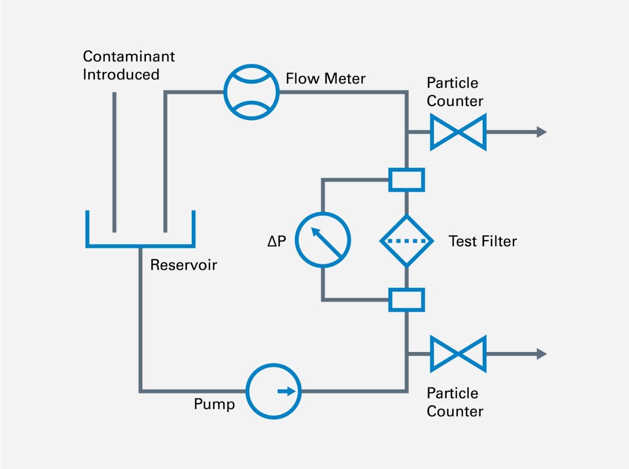 液压和润滑油滤芯行业以往实施的标准为 ISO 16889,该标准确实发挥了作用:详细介绍试验台的设计和构造、污染物的应用以及过滤产品测试过程中使用的程序。这是一项简单的测试,方法为通过稳定的流速将“中等”试验用粉尘连续注入滤芯的储罐中,可以轻松重复以获得准确的结果。但是,在所有可能的液压滤芯有效性测试中,它与实际应用相差最大,无法准确了解流量波动对滤芯性能的影响。