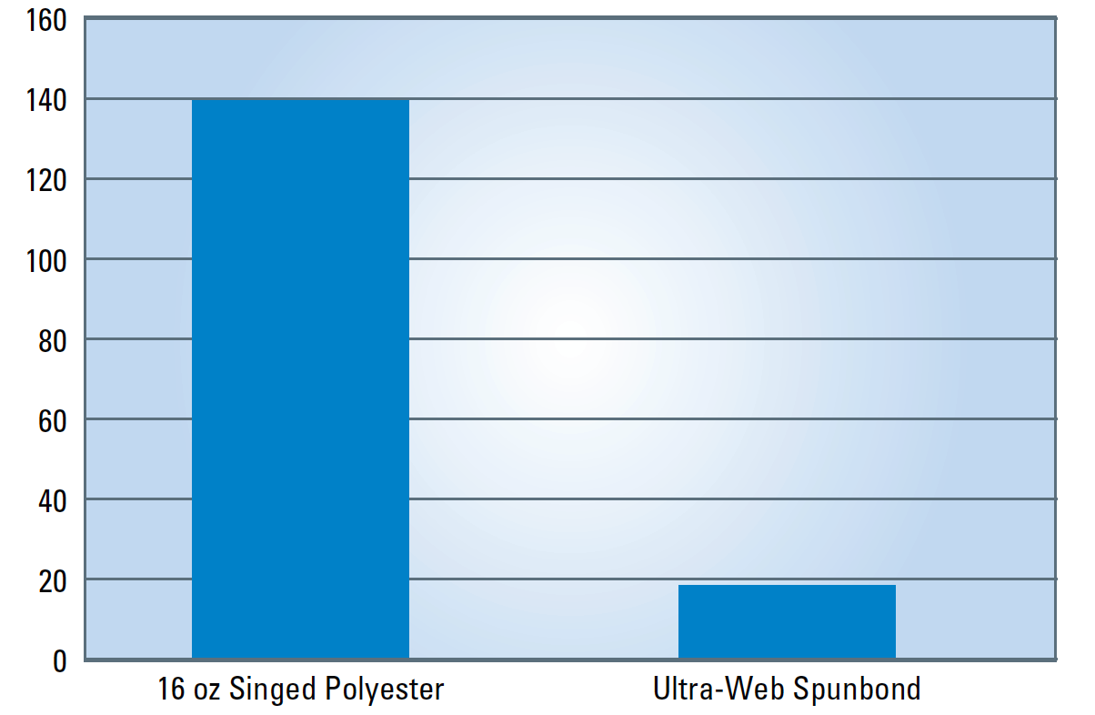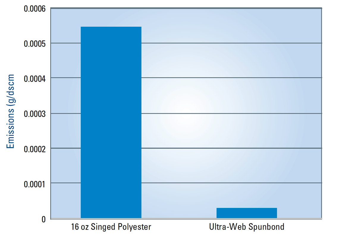 该测试表明,在测试的最后阶段,Ultra-Web Spunbond 的排放量比 16 盎司的聚酯袋材料减少了 94%。