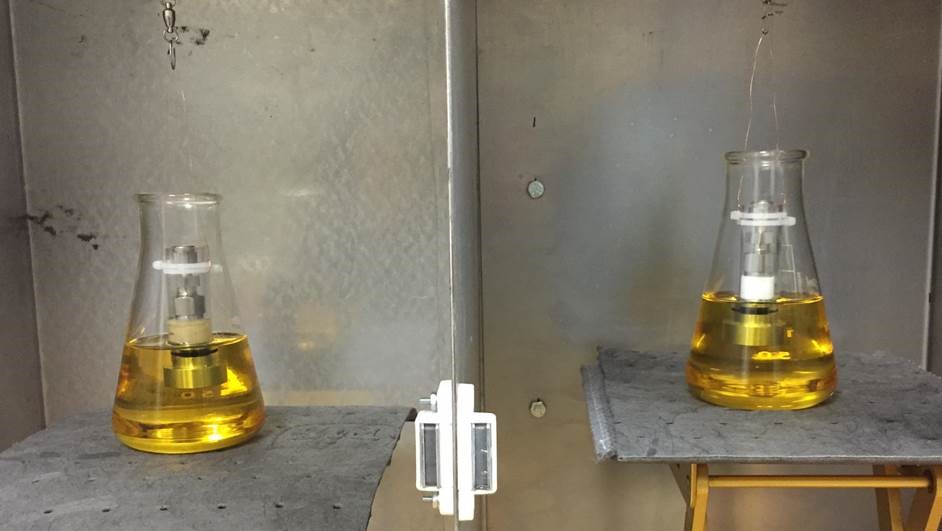 图 4:在 Synteq 疏水疏油型滤料(左)与普通的吸附滤料演示中,吸附滤料在 45 分钟后达到饱和并且质量增加 2.08 g 克。唐纳森的疏水疏油型 Synteq 滤料质量增加 0.07 g 克,在相同时间段内吸收的油量要少 30 倍。 图 4:在 Synteq 疏水疏油型滤料(左)与普通的吸附滤料演示中,吸附滤料在 45 分钟后达到饱和并且质量增加 2.08 g 克。唐纳森的疏水疏油型 Synteq 滤料质量增加 0.07 g 克,在相同时间段内吸收的油量要少 30 倍。