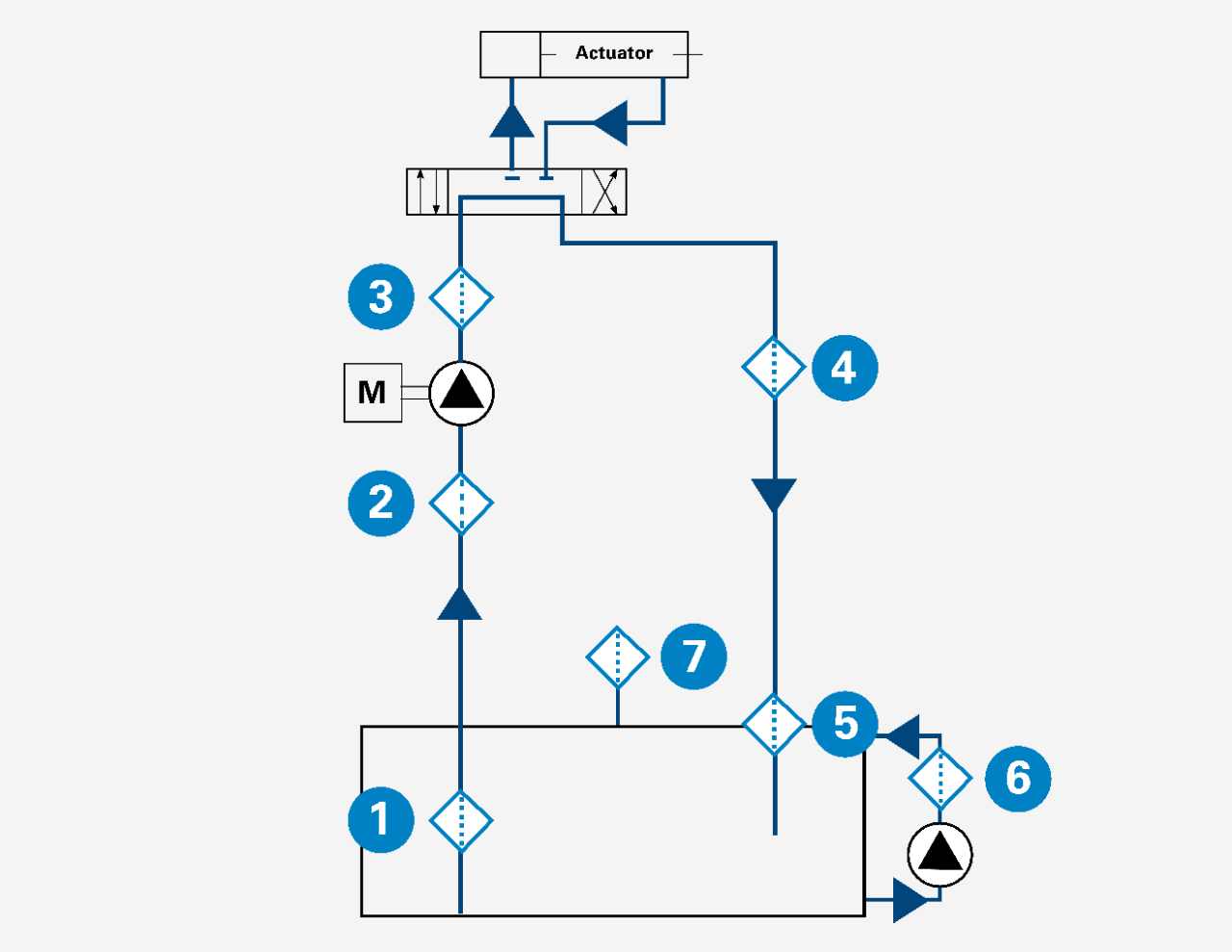 以下描述是对具有不同过滤策略的单个回路的解释,尽管许多液压回路包含不同流动路径。这些过滤策略可以满足各种系统的污染清除要求。